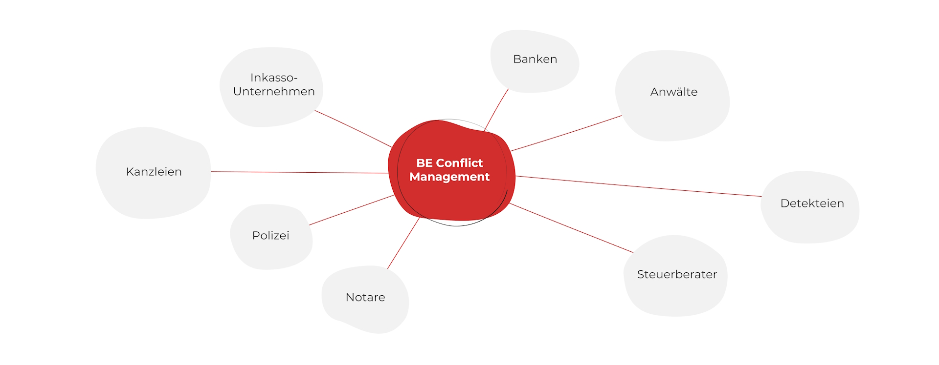 Wir bieten Ihnen aus einer Hand das Management eines professionell arbeitenden Netzwerkes aus Anwälten, Steuerberatern, Notaren, Banken, Detekteien, Inkassounternehmen etc., welche im Verbund zeitnah, zielgerichtet und effizient zur Klärung Ihrer Angelegenheiten beitragen. Wir begleiten Sie auch gerne, als Ihr Ratgeber, zu allen anfallenden Terminen oder nehme diese für Sie wahr. Uns ist es in diesem Zusammenhang wichtig, Sie als unseren Kunden über den Fortgang der Recherchen, Entwicklungen, Ergebnissen etc. ständig (nach Absprache) auf dem Laufenden zu halten.